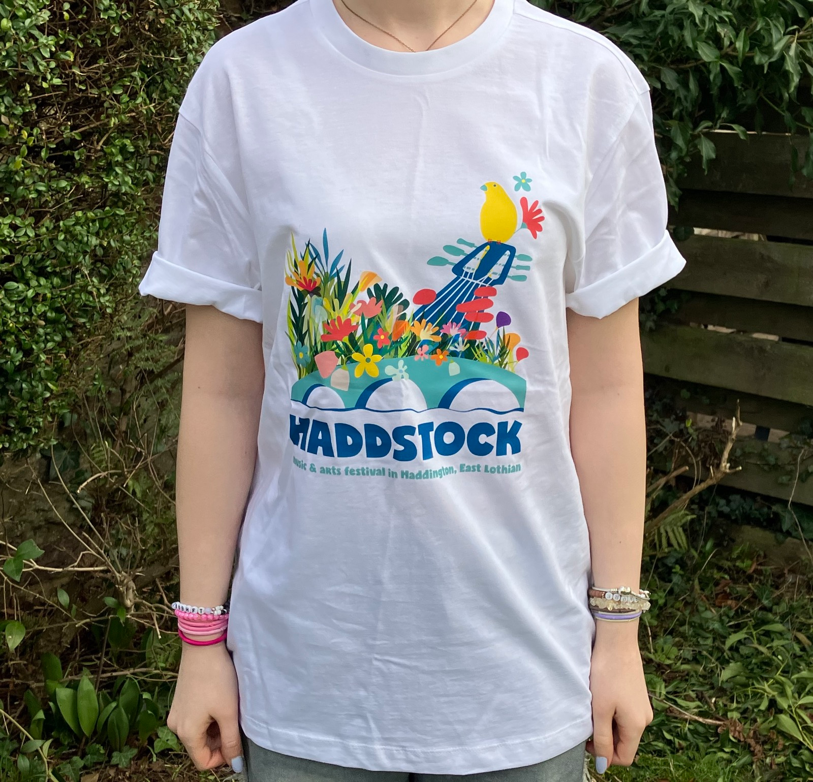 Pre-order the Haddstock t-shirt, 2026 edition. This year’s festival has a climate theme, and we’ll have a garden trail, so we’ve added some glorious flowers. Make the ultimate fashion statement and support the festival in one easy move! All profits will support the Haddstock festival to keep going. Designed and printed in East Lothian.